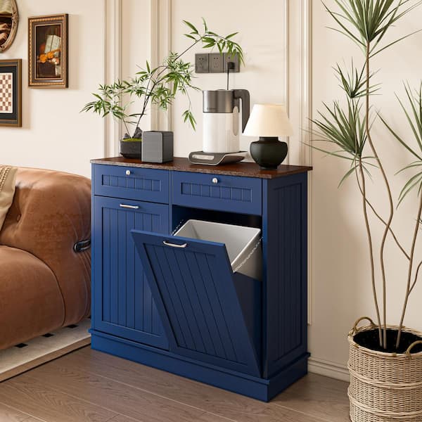 Farmhouse 40 in. W x 14 in. D x 36 in. H Ready to Assemble Cabinets Floor Tilt Out Trash Can Cabinet in Navy Blue