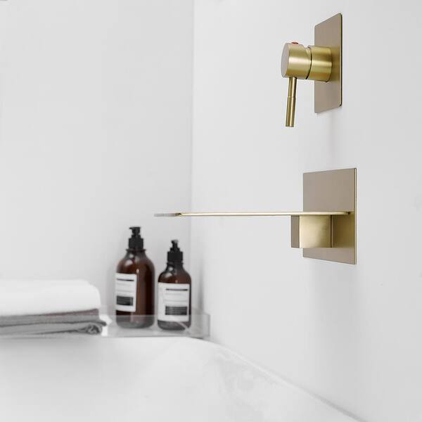 1-Handle Wall Mount Roman Tub Faucet with Waterfall Spout in Brushed Gold