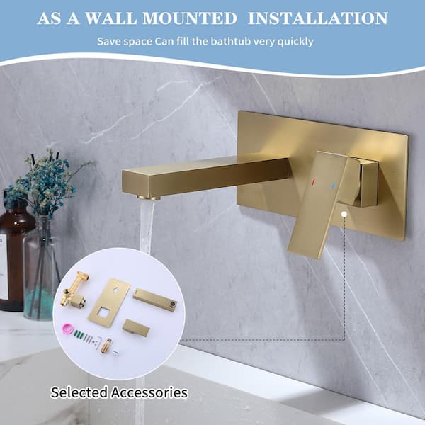 1-Handle Wall Mount Roman Tub Faucet with Waterfall Spout in Brushed Gold
