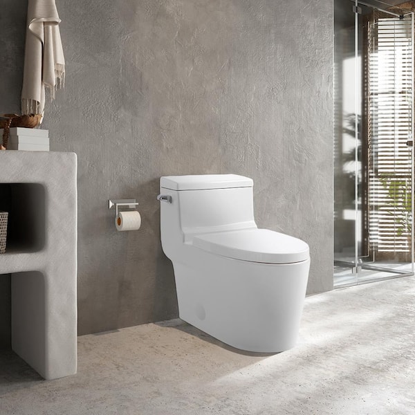 1-Piece Modern 1.28 GPF Dual Flush Siphon Elongated ADA Chair Height Toilet Soft Closing Seat in Crisp White
