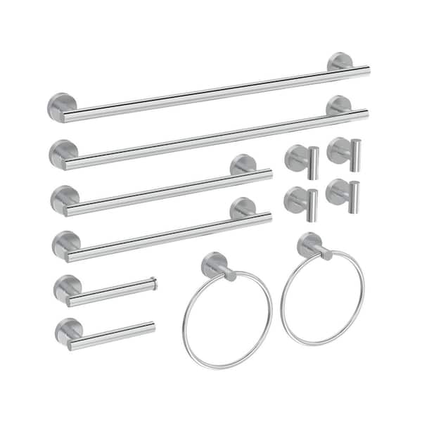 12-Piece Bath Hardware Set with Towel Ring Toilet Paper Holder Towel Hook Towel Bar Included Wall Mount in Chrome
