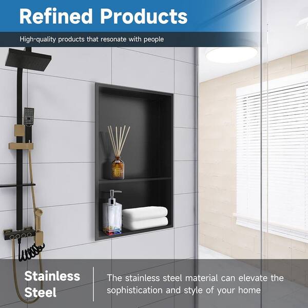 12 in. W x 18 in. H x 4 in. D Stainless Steel Shower Niche in Matte Black