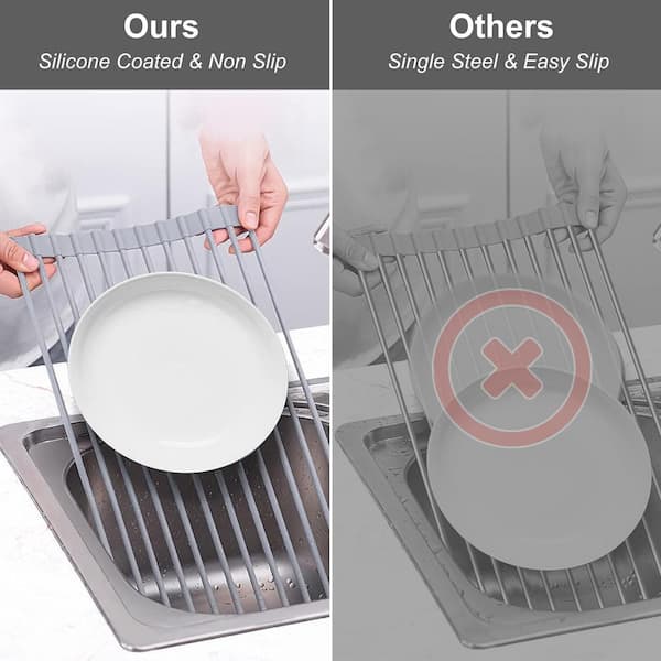 13 in. x 10 in. Roll-Up Kitchen Sink Drying Rack, Foldable Dish Rack in Gray