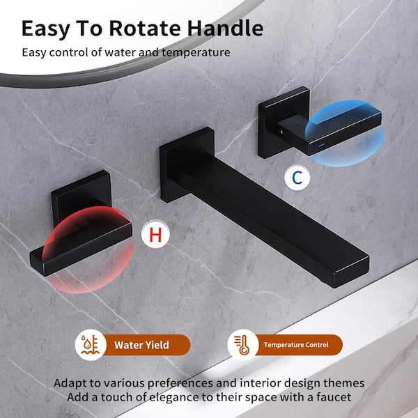 2-Handle Wall Mounted Roman Tub Faucet with Waterfall Spout in Matte Black