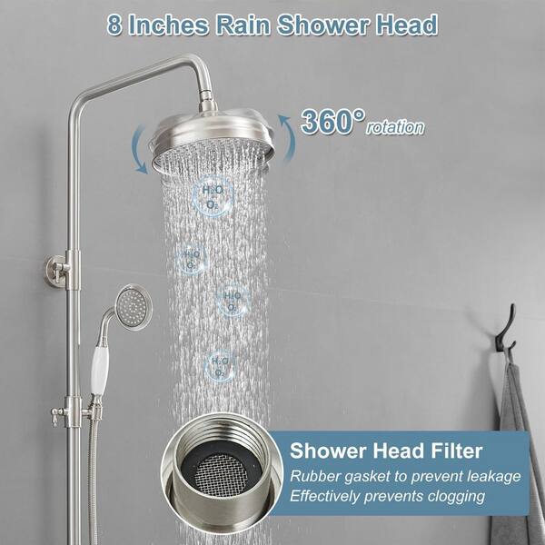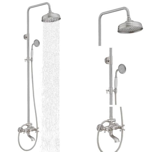 3-Spray Wall Slid Bar Round Rain Shower Faucet with Hand Shower 2 Cross Handles in Nickel (Valve Included)
