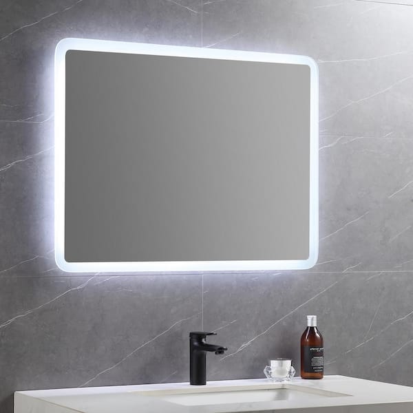 32 in. W x 24 in. H Large Rectangular Frameless LED Light Wall Mounted Bathroom Vanity Mirror in Polished Crystal