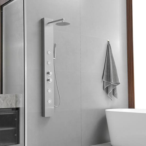 4-Jet Rainfall Shower Panel System with Rainfall Waterfall Shower Head and Shower Wand in Chrome Nickel