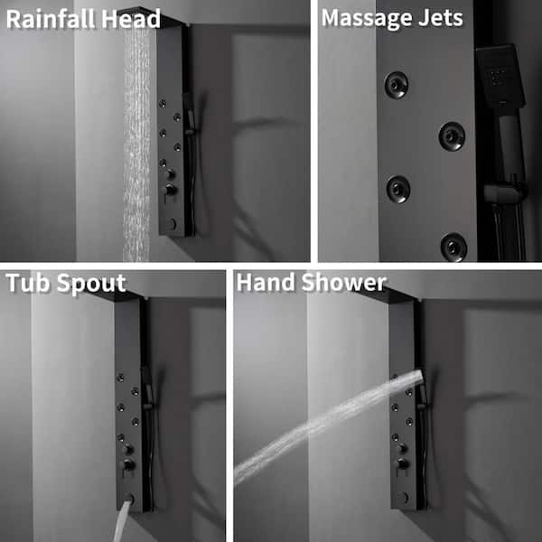 5-Jet Rainfall Shower Panel System with Rainfall Shower Head and Shower Wand in Black