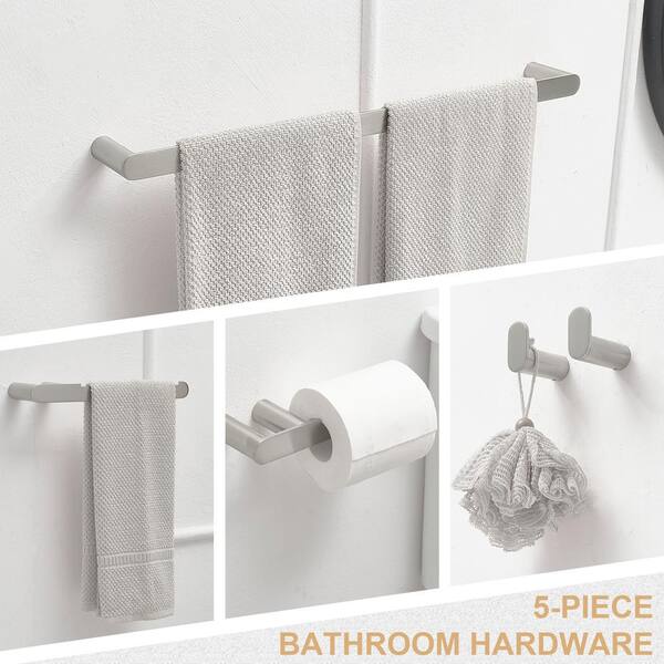 5-Piece Bath Hardware Set with Towel Bar Towel Hook Toilet Paper Holder in Brushed Nickel