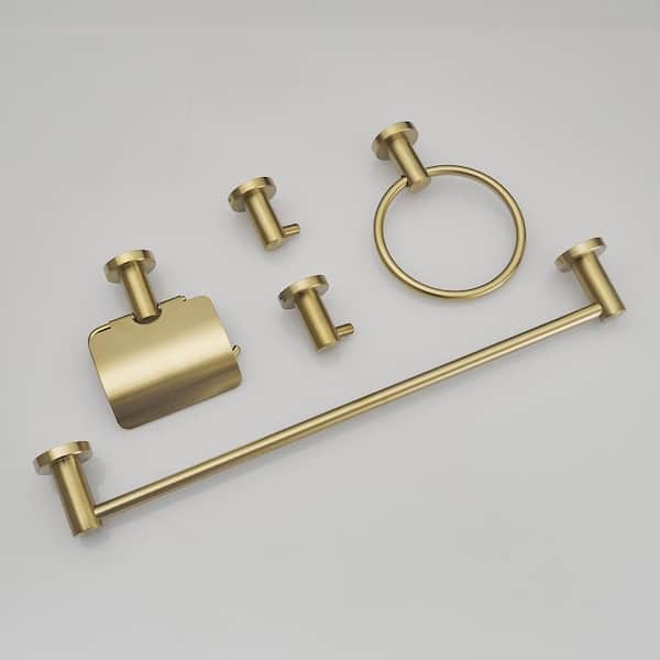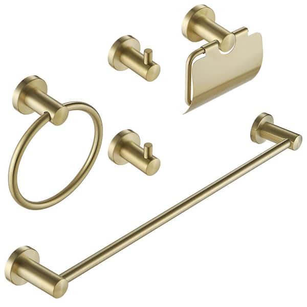 5-Piece Bath Hardware Set with Towel Bar Towel Ring Towel Hook Toilet Paper Holder in Brushed Gold