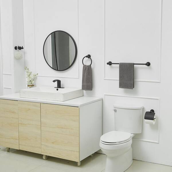 5-Piece Bath Hardware Set with Towel Bar Towel Ring Towel Hook Toilet Paper Holder in Matte Black