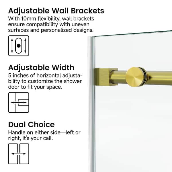 56-60 in. W x 76 in. H Sliding Frameless Shower Door in Gold with Clear Glass