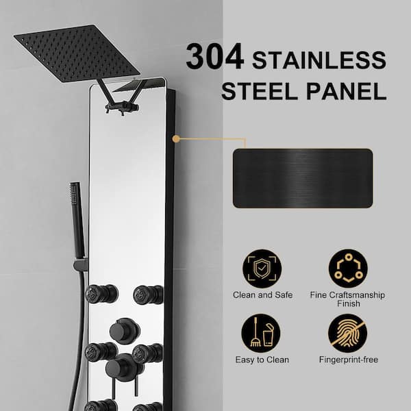 8-Jet Multifunction Shower Panel System with Adjustable Rainfall Shower Head and Handheld in Matte Black
