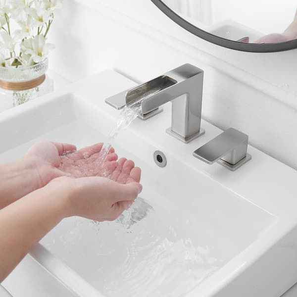 • Features a modern waterfall spout for an elegant bathroom look