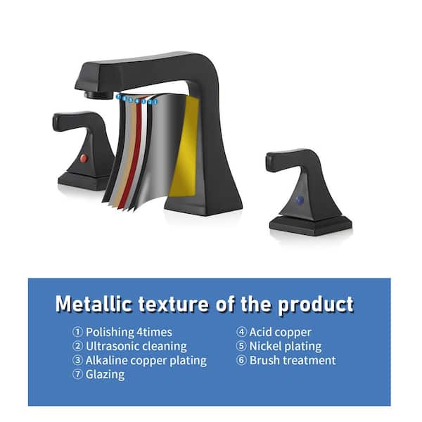 8 in. Widespread Double Handle Bathroom Faucet with Drain Kit Included and Spot Resistant in Matte Black