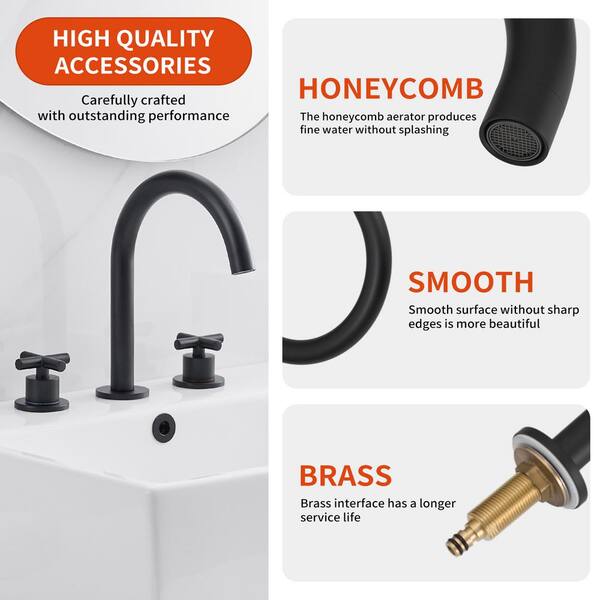 8 in. Widespread Double Handle Bathroom Faucet with Drain Kit Included and Spot Resistant in Matte Black