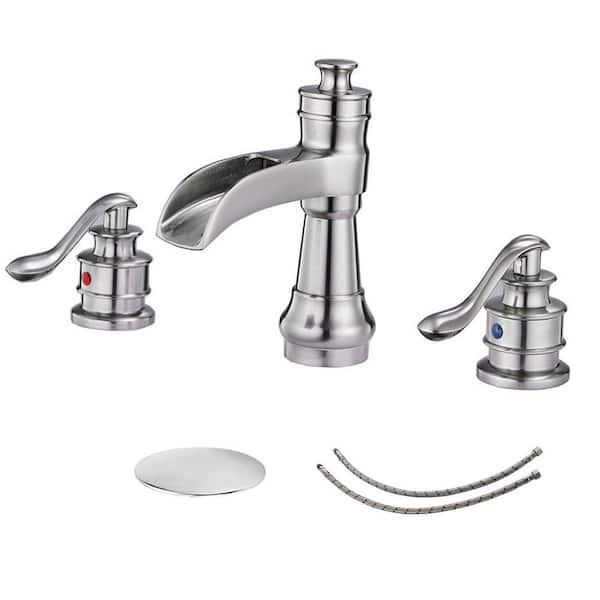 8 in. Widespread Double Handle Bathroom Faucet with Drain Kit Included in Brushed nickel