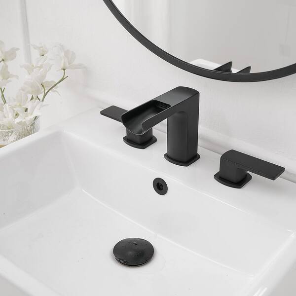 8 in. Widespread Double Handle Bathroom Faucet with Drain Kit Included in Matte Black