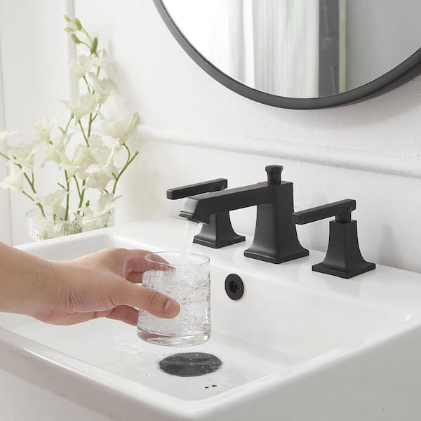 8 in. Widespread Double Handle Bathroom Faucet with Drain Kit Included in Matte Black