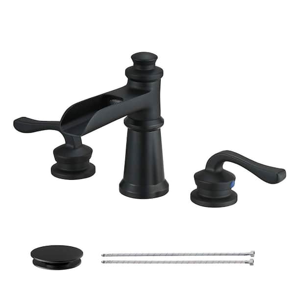 8 in. Widespread Double Handle Bathroom Faucet with Drain Kit Included in Matte Black