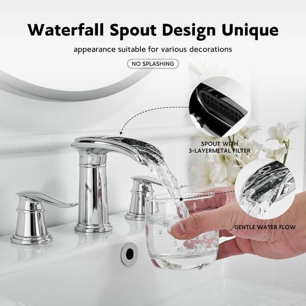 8 in. Widespread Double Handle Bathroom Faucet with Drain Kit Included in Polished Chrome