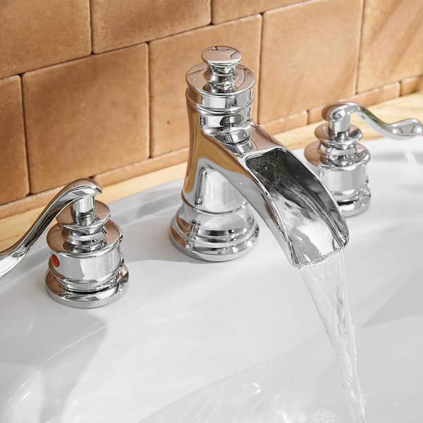 8 in. Widespread Double Handle Bathroom Faucet with Drain Kit Included in Polished Chrome