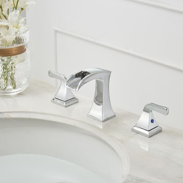 8 in. Widespread Double Handle Bathroom Faucet with Drain Kit Included in Polished Chrome