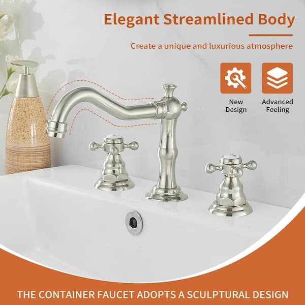 8 in. Widespread Double Handle Low Arc Bathroom Faucet with Drain Kit, Easy to Install, Drip Free in Brushed Nickel