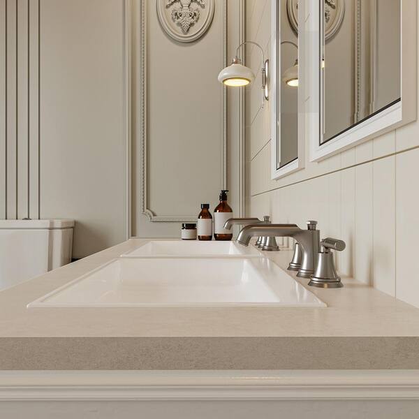 8 in. Widespread Double Handle Low Arc Bathroom Faucet with Drain Kit, Easy to Install, Drip Free in Brushed Nickel