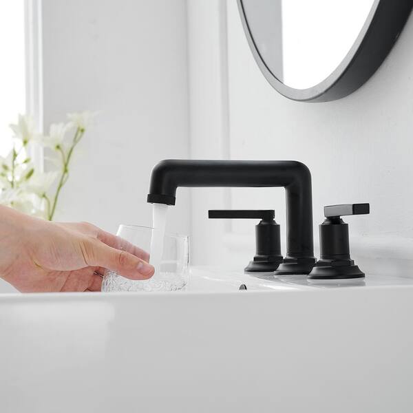 8 in. Widespread Double Handle Low Arc Bathroom Faucet with Drain Kit, Easy to Install, Drip Free in Matte Black