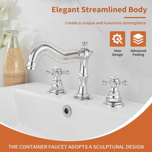8 in. Widespread Double Handle Low Arc Bathroom Faucet with Drain Kit, Easy to Install, Drip Free in Polished Chrome