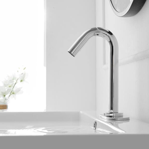 Automatic Sensor Touchless Single Hole Bathroom Sink Faucet Deck Mount with Temperature Mixing Valve in Polished Chrome