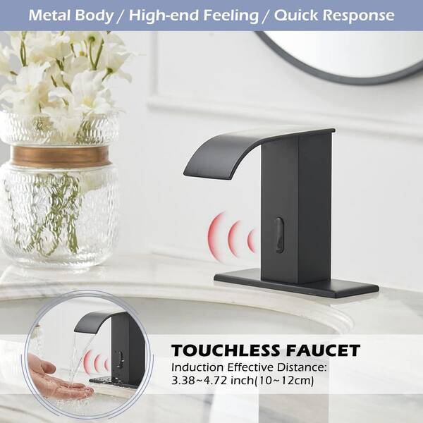 Automatic Sensor Touchless Single Hole Bathroom Sink Faucet with Deck Plate & Pop-Up Drain in Matte Black