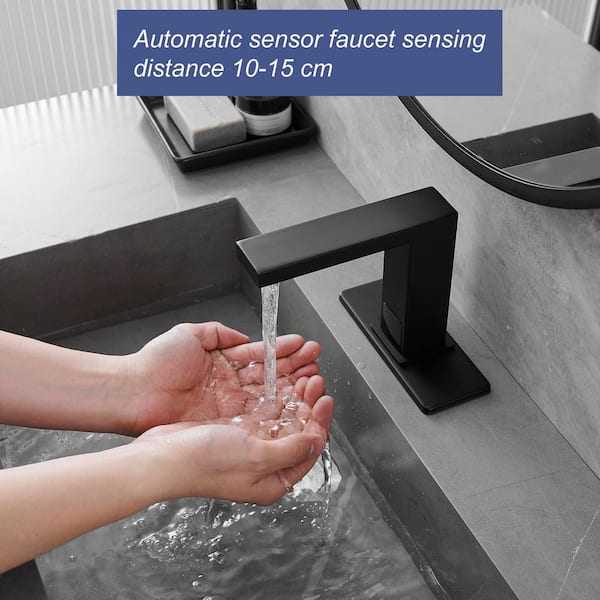 Automatic Sensor Touchless Single Hole Bathroom Sink Faucet with Deck Plate in Matte Black