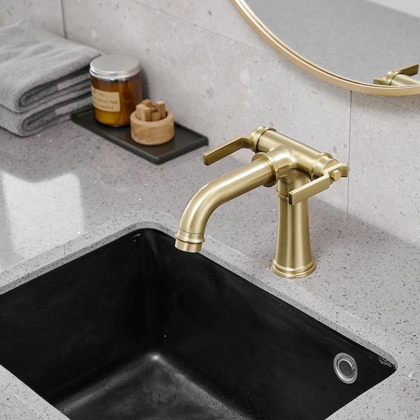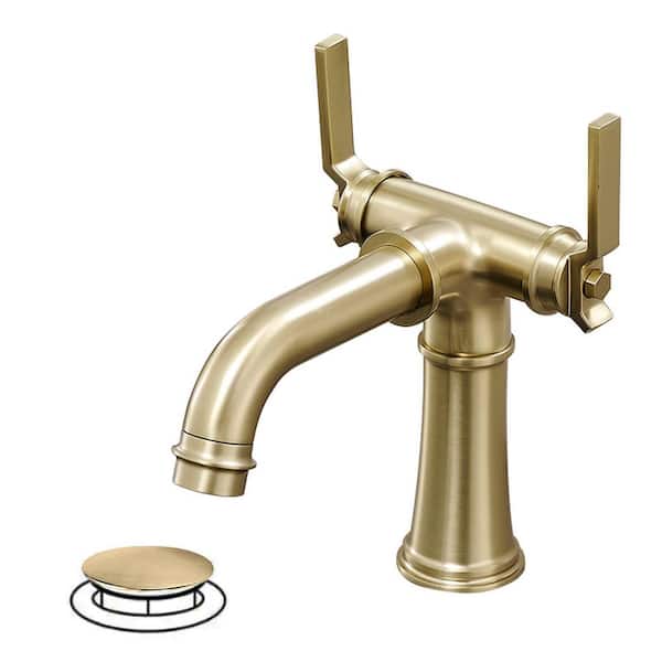 Double Handle Single Hole Bathroom Faucet in Brushed Gold