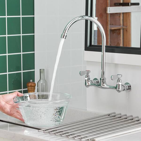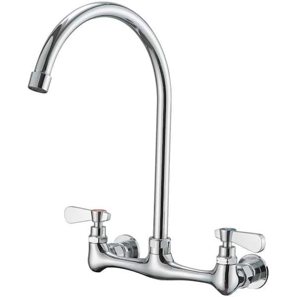 Double Handle Wall Mount Tall High Arc Spout Standard Kitchen Faucet in Polished Chrome