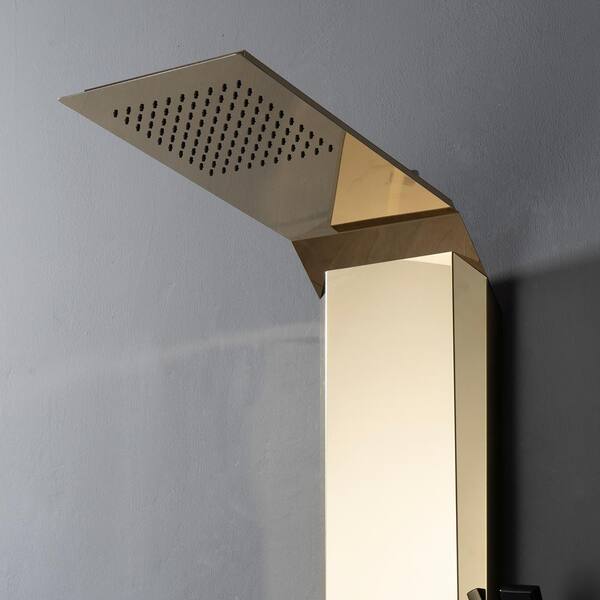 Dual 3-in-1 4-Jet Rainfall Shower Panel System with Rainfall Shower Head and Shower Wand in Black Gold