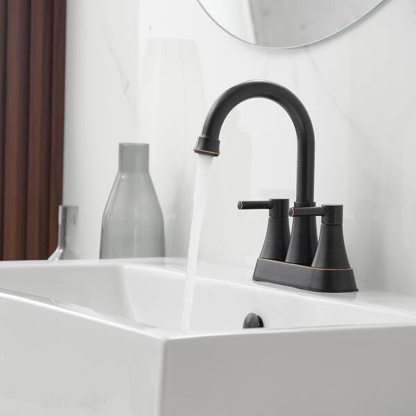 Easy Install 4 in. Centerset Double Handle Spot Resistant Bathroom Faucet with Drain Kit in Oil Rubbed Bronze