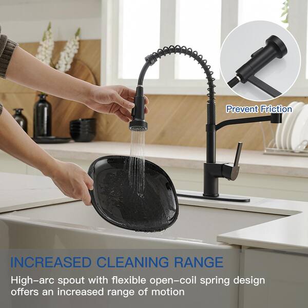 Matte Black 16.14 in. H Pull Down Sprayer Kitchen Faucet with 360° Spout Swivel