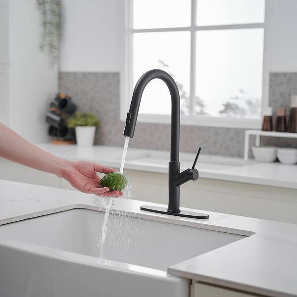 Matte Black 17.3 in. H Pull Down Sprayer Kitchen Faucet with 180° Spout Swivel