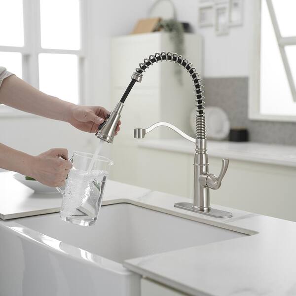 Pro Style Spring Single Handle Brushed Nickel 19.01 in. H 2-Func Pull-Down Kitchen Faucet W/ 360° Swivel