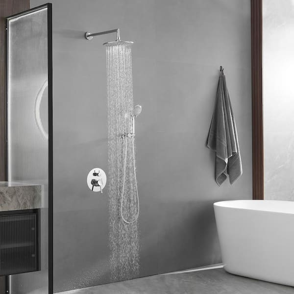 Round Single-Handle 3-Spray Rain Shower Head Round High-Pressure Shower Faucet in Polished Chrome (Valve Included)