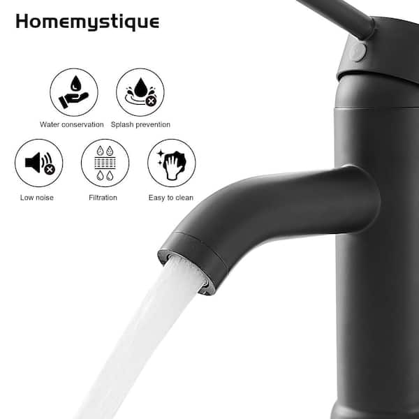 Simple Single Waterfall Handle Single-Hole Bathroom Brass Sink Faucet with Pop-Up Drain Assembly Kit Included in Black