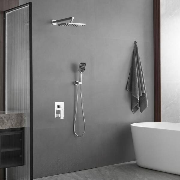 Single Handle 2-Spray 12 in. Square Rainfall Shower Faucet 2.5 GPM with High Pressure in. Chrome(Valve Included)