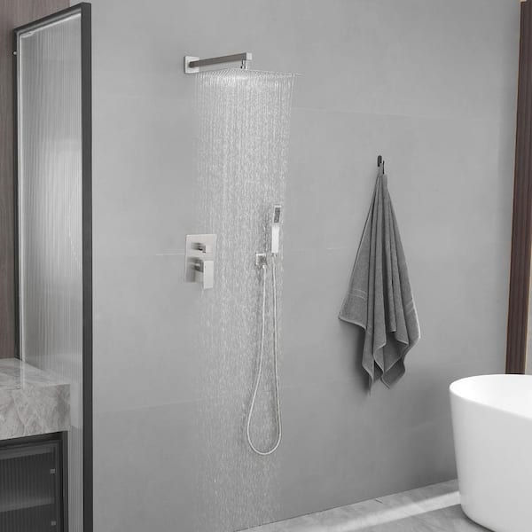 Single Handle 2-Spray Shower Faucet 2.5 GPM with 180° Swivel, Adjustable Flow Rate in Brushed Nickel
