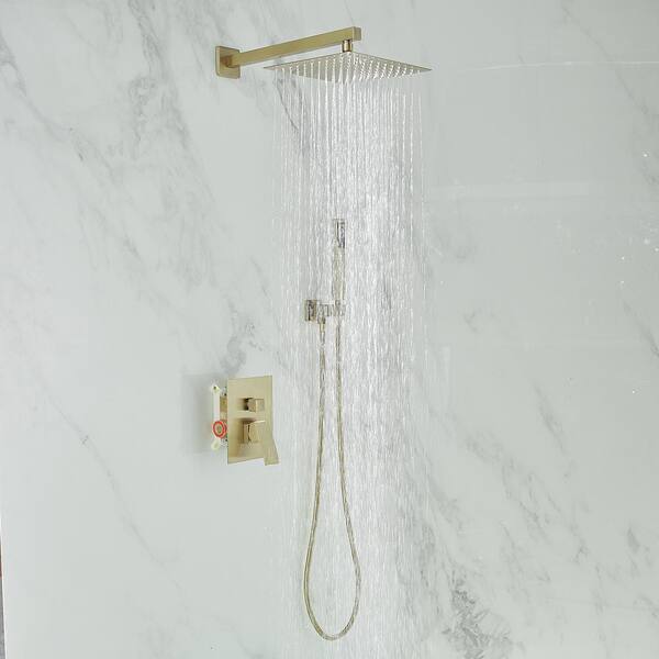 • Includes a 10-in. square rain showerhead, handheld and valve