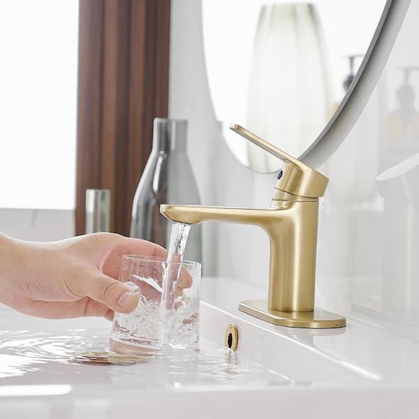 Single Handle 2-Tone Bathroom Faucet in Black/Gold with Deck Plate and Drain