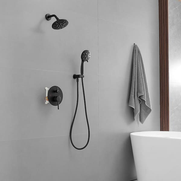 Single Handle 5-Spray Round Shower Faucet 2.5 GPM with Detachable Handheld Shower in Black (Valve Included)