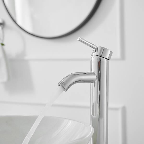 Single Handle Low Arc Vessel Sink Bathroom Faucet with Pop-Up Drain in Polished Chrome