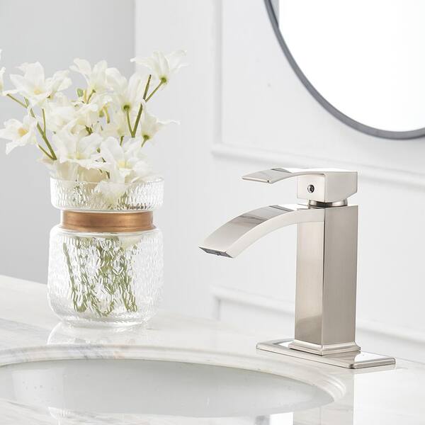 Single Handle Single Hole Bathroom Faucet in Brushed Nickel